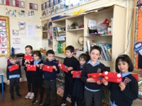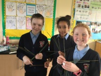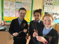 St Bridget’s Crosses. Thanks to hazel and Ruth who brought in some rushes. We all made some St Bridget’s Crosses.